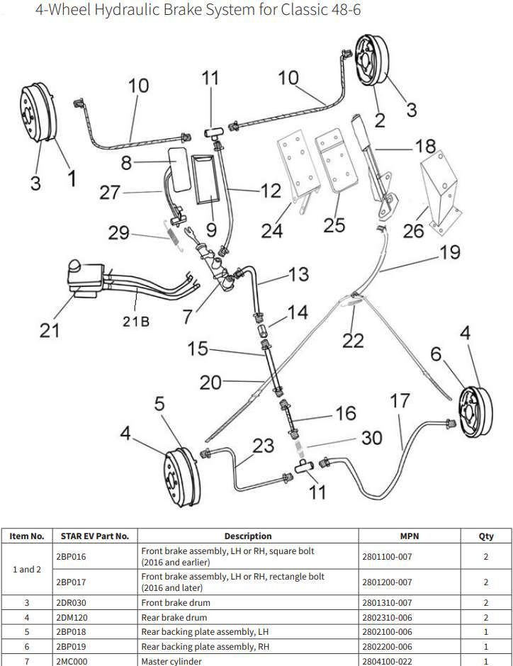 4-Wheel Hydraulic Brake System for Classic 48-6