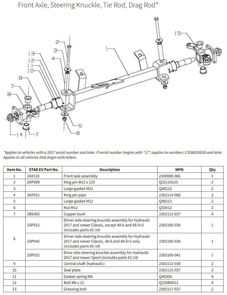 StarEV OEM 2SP012 Spindle / Knuckle ASSEMBLY #2-14 (Driver Side) for HYDRAULIC 2017 and newer Classic ( except 6L)