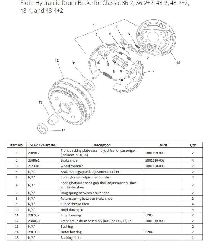 Front Hydraulic Drum Brake for Classic 36-2, 36-2+2, 48-2, 48-2+2, 48-4, and 48-4+2