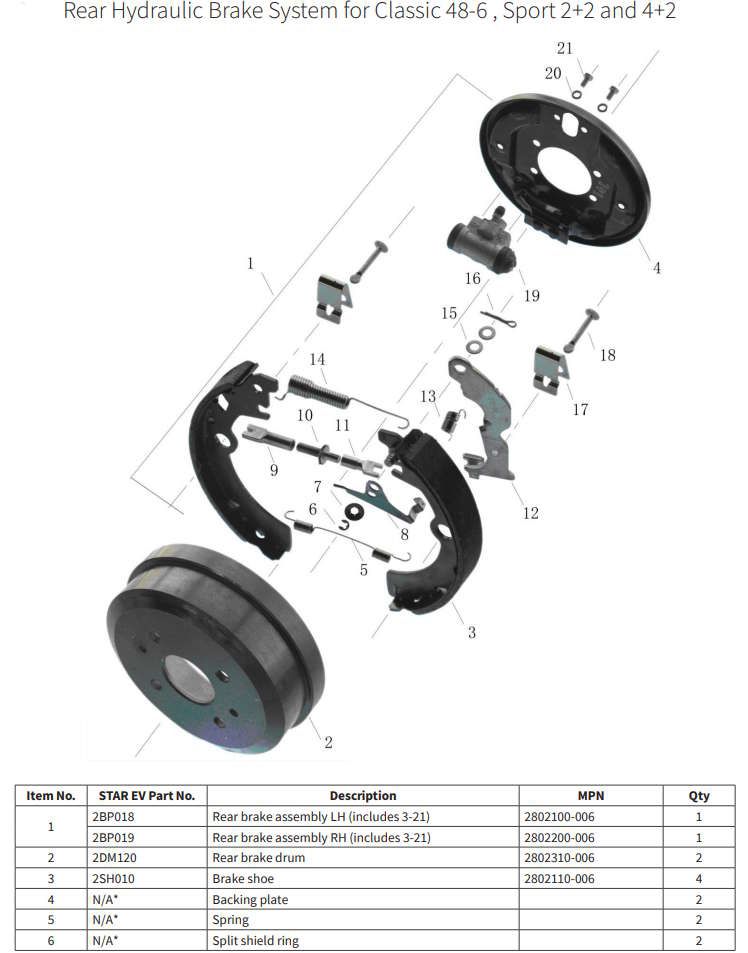 StarEV OEM 2BP018 REAR Driver Side Backing Plate assy for 6P Classic, Classic HCX, 4P Bubble Car and HYD SPORT. 180mm